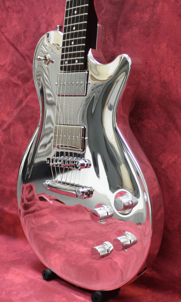 The Metalin' AOC Polished is truly a unique instrument with a single-cut billet aluminum body and Moses graphite neck. The hollow-body, arched aluminum guitar produces tones unmatched from any other electric guitar. With the combination of Duncan Inc pickups and the aluminum body, the guitar produces thick, resonant tones. The cutting-edge sound delivered by the AOC is something everyone must hear!