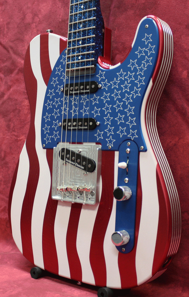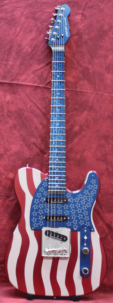The Metalin' "Americana" is truly a unique instrument with a single-cut billet aluminum body and Moses Holographite neck. The hollow-body, color anodized guitar produces tones unmatched from any other electric guitar. With the combination of Duncan Inc pickups and the anodized body, the guitar produces thick, resonant tones. The cutting-edge sound delivered by the Americana is something everyone must hear!
