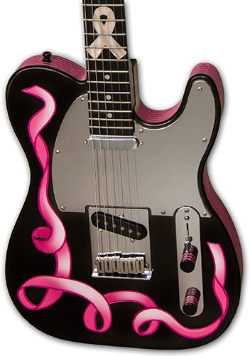Our breast cancer awareness guitar is special to us. This guitar was designed to show our support to those who have battled or are currently battling the fight of breast cancer.